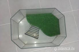 Výbava akvária Samozrejme, ak hovoríme o vodných korytnačkách, nevyhnutné je vlastniťakvárium resp. nádrž s vodou. Akvárium ma byť také, aby sa v ňom cítila korytnačka dobre. To znamená: dĺžka akvária by mala byť asi 6krát dlhšia ako samotná korytnačka a šírka aspoň 2krát dlhšia ako korytnačka. Výška akvária musí zodpovedaťbezpečnosti pre tieto zvieratá. Čiže ak nechceme aby korytnačka utrpela zranenia skokom z akvária (napr. zlomeninu panciera, otras mozgu...) je dobré aby bolo aspoň také vysoké aby keď sa korytnačke podarí postaviť na zadné nohy (viď foto sklolezec) nemala možnosť preliezť. Ďalej sklo musí byť dostatočne hrubé. Korytnačka na dne akvária môže mať kamienky alebo piesok ja mám kamienky.Korytnačka musí mať možnosť vysušiť sa na nejakom ostrovčeku, ja mám akvárium kúpené z ostrovčekom ale ostrovček sa dá aj vyrobiť z väčších kameňov alebo nejakú dosku tam pripevníme no je to na vašej fantázii ale nezabúdajte na bezpečnosť a aby sa tam korytnačka vôbec dostala.Ďalej potrebuje ohrievač aby jej ohrieval vodu a taktiež filtér aby ste nemuseli každý ďeň korytnačke čisťiť akvárium.Ak máte Väčšie akvárium môžte do akvária umiestniť vodné rastlinky ale pozor tie potvorky všetko obhrýžu ja som dala umelé aj do tých mi kúsala.Takto vyzerá moje akvárium len približne toto sú fotky z internetu ale ja mám väčšie tu to vyzerá trocha natlačene .jpg)